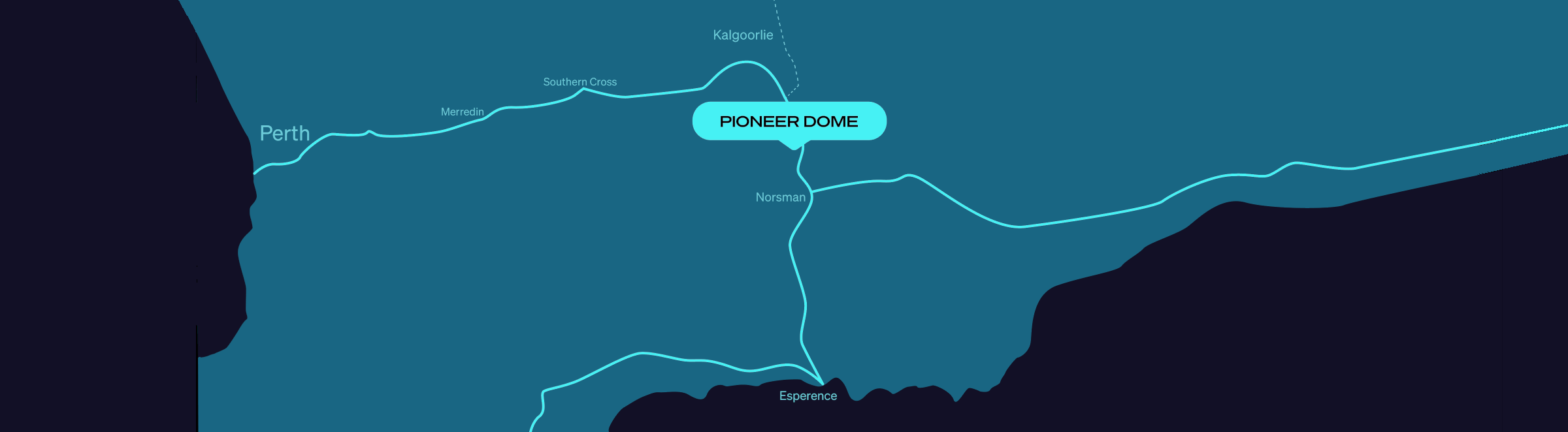 Pioneer Dome Project is a highly prospective, multi-commodity project located approximately 130 km south of Kalgoorlie and 200 km north of the port of Esperance.